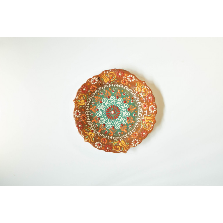 Egyedi, kézzel készített dísztányér Üzbegisztánból, 22 cm, csepegtető technikával