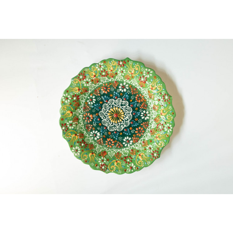 Egyedi, kézzel készített dísztányér Üzbegisztánból, 32 cm, csepegtető technikával